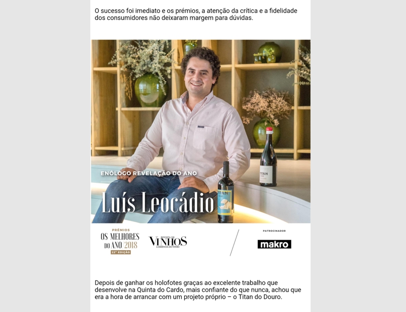 Luís Leocádio, named Best New Oenologist of the Year by Revista de Vinhos
